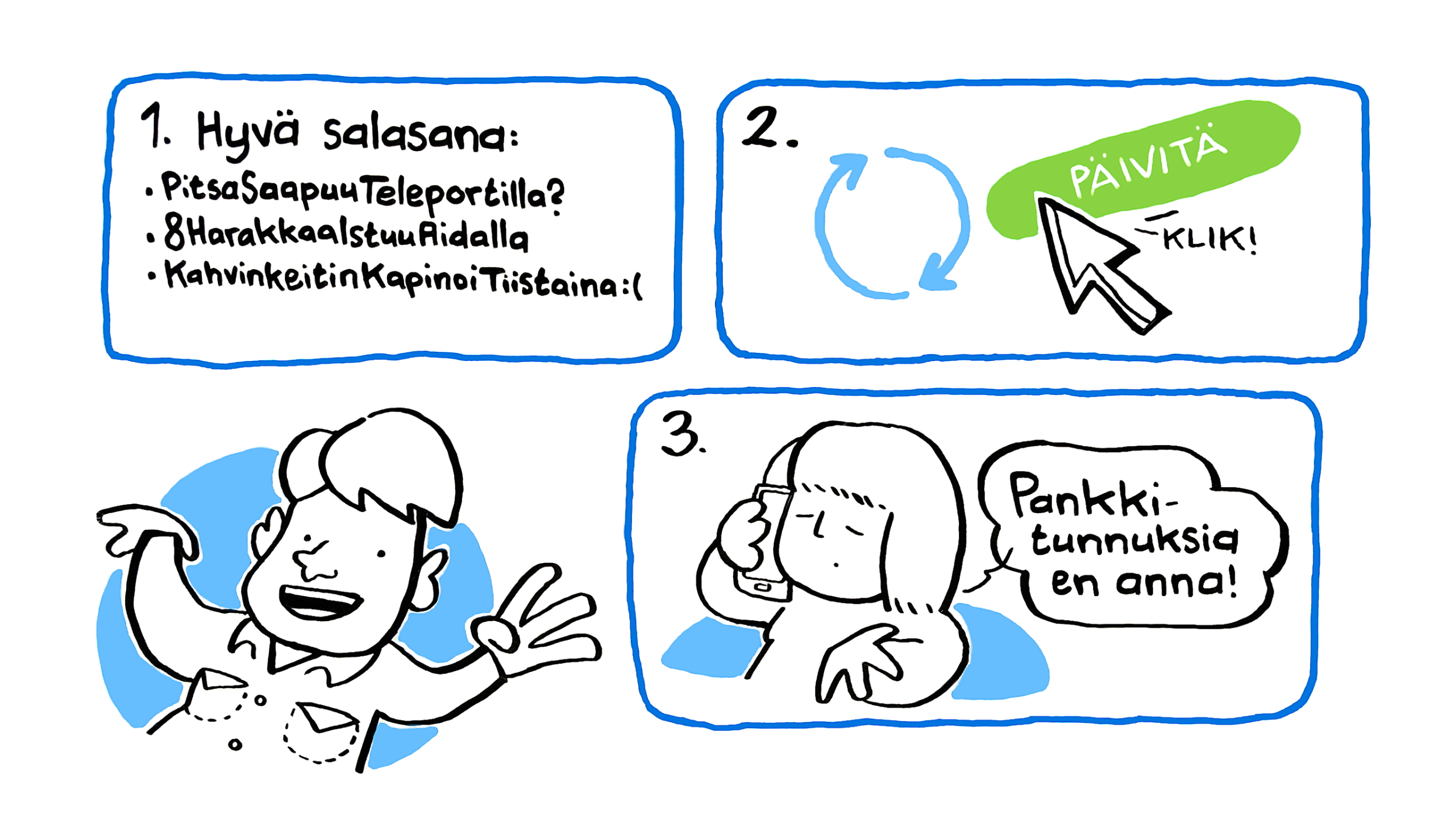 - pankkitunnuksia ei anneta kenellekään.